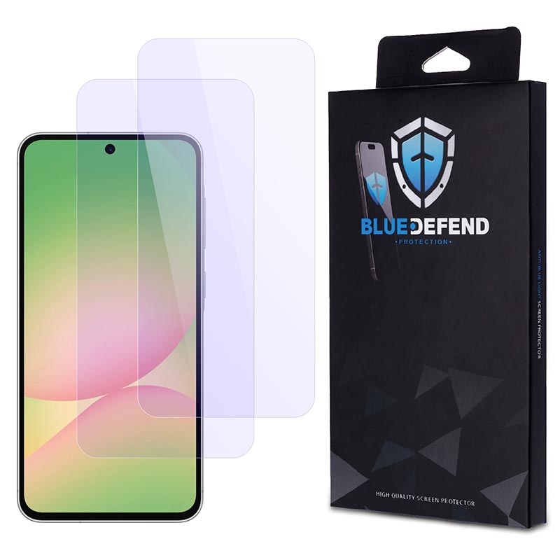 Beskytt skjermen på Samsung Galaxy A57 med BlueDefend Anti-Blue Light skjermbeskytter i herdet glass. Denne førsteklasses skjermbeskytteren beskytter ikke bare Samsung Galaxy A57 mot riper og støt, men filtrerer også skadelig blått lys, noe som reduserer belastningen på øynene ved langvarig skjermbruk. Det ultraklare glasset opprettholder høy berøringsfølsomhet og skjermens klarhet, mens den presise passformen sikrer full dekning og beskytter selv kantene på Samsung Galaxy A57. Den enkle installasjonsprosessen leveres med et antiboblelag som sikrer sømløs montering.
