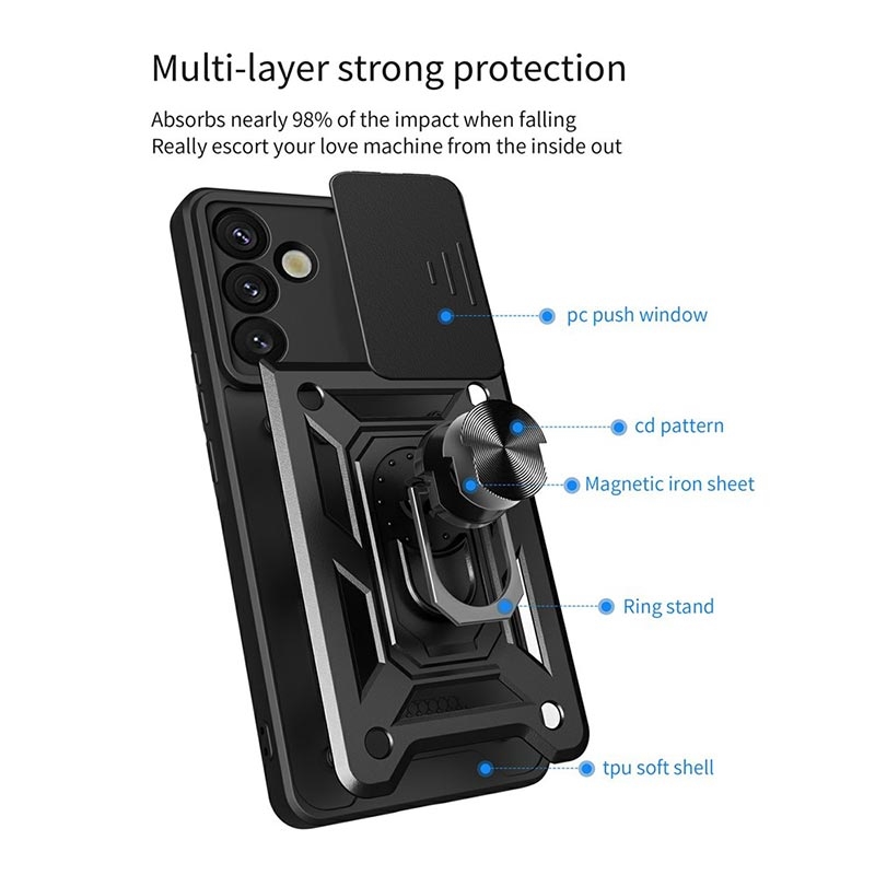 - Roterende ring hybridetui med kameraavskjerming for Samsung Galaxy A57