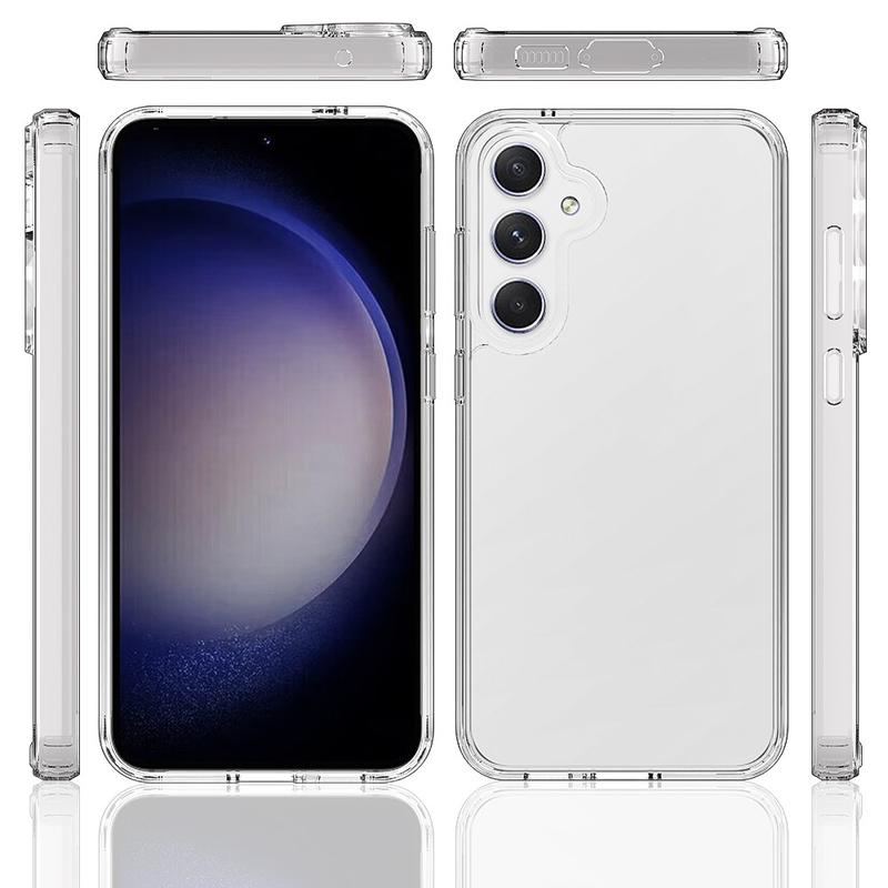 Dette tilbehøret bruker en kombinasjon av akryl og TPU for å holde smarttelefonen i best mulig stand. Samtidig ser forsterkede, støtabsorberende hjørner for å forhindre fallskader, mens den gjennomskinnelige designen viser den vakre utformingen av Samsung Galaxy A57.