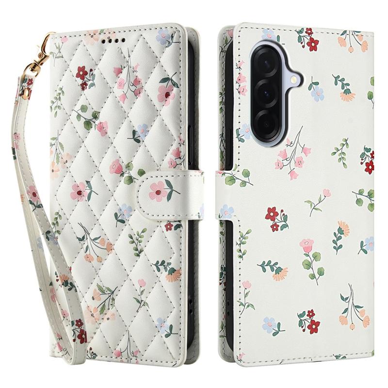 Rombisk blomsterlommebok-etui for Samsung Galaxy A57 - med stropp og kortspor