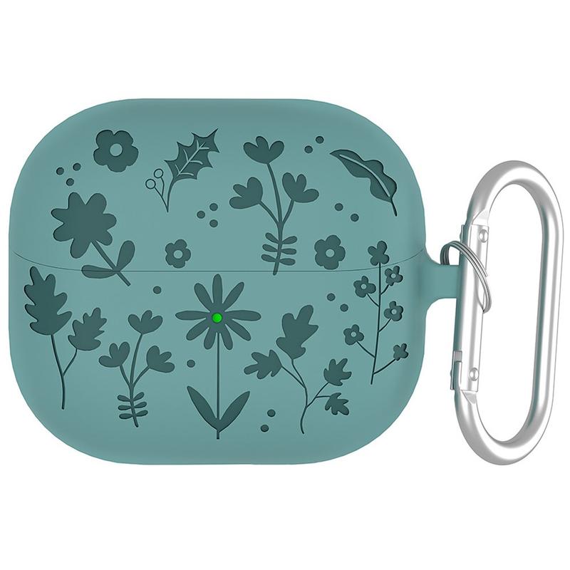 Flytende silikonetui med blomstermønster og karabinkrok til Samsung Galaxy Buds3, Galaxy Buds3 Pro