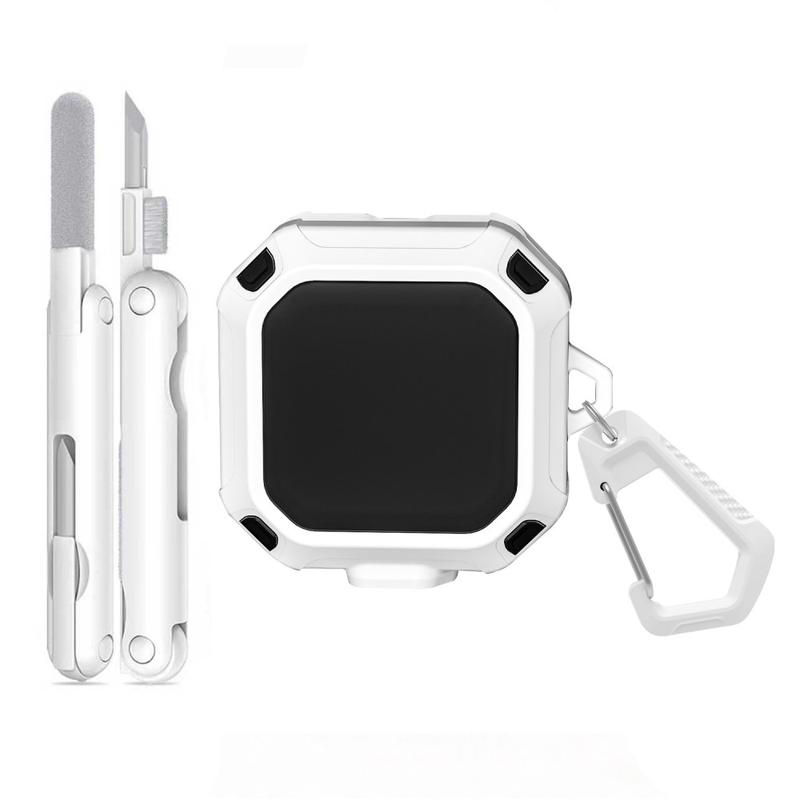 Etuiet leveres med en praktisk karabinkrok i metall, slik at du kan feste øreproppene sikkert til en ryggsekk, beltestropp eller nøkkelring, slik at de alltid er innen rekkevidde. En multifunksjonell rengjøringspenn er også inkludert for å fjerne støv, smuss og rusk fra øreproppene og ladekontaktene, slik at enheten din holdes ren og fungerer som den skal. Med presise utskjæringer og full trådløs ladekompatibilitet kan du lade øreproppene uten å fjerne etuiet.