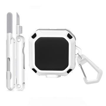 Samsung Galaxy Buds4/Buds4 Pro elegant etui med karabinkrok og rengjøringspenner - hvit