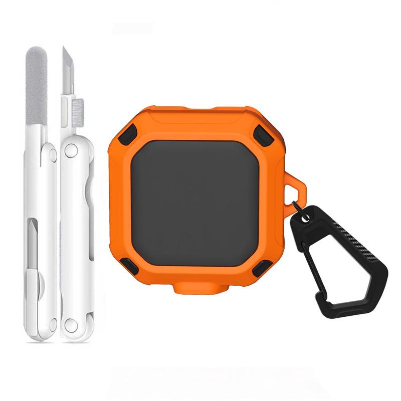 Etuiet leveres med en praktisk karabinkrok i metall, slik at du kan feste øreproppene sikkert til en ryggsekk, beltestropp eller nøkkelring, slik at de alltid er innen rekkevidde. En multifunksjonell rengjøringspenn er også inkludert for å fjerne støv, smuss og rusk fra øreproppene og ladekontaktene, slik at enheten din holdes ren og fungerer som den skal. Med presise utskjæringer og full trådløs ladekompatibilitet kan du lade øreproppene uten å fjerne etuiet.