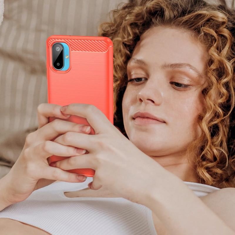 Gi din Samsung Galaxy M06, Galaxy F06 5G den stilige beskyttelsen den fortjener med dette børstede karbonfiberetuiet. Dekselet kombinerer en elegant, børstet overflate med en robust, beskyttende design, og beskytter enheten din mot daglige støt og riper samtidig som det gir et komfortabelt grep.