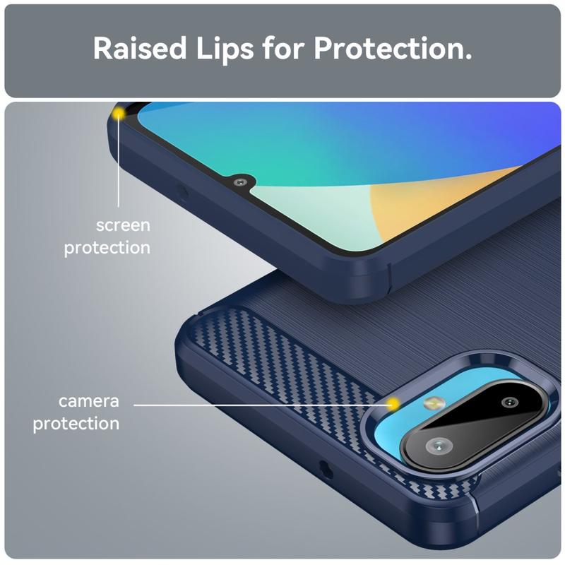 Gi din Samsung Galaxy M06, Galaxy F06 5G den stilige beskyttelsen den fortjener med dette børstede karbonfiberetuiet. Dekselet kombinerer en elegant, børstet overflate med en robust, beskyttende design, og beskytter enheten din mot daglige støt og riper samtidig som det gir et komfortabelt grep.