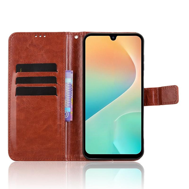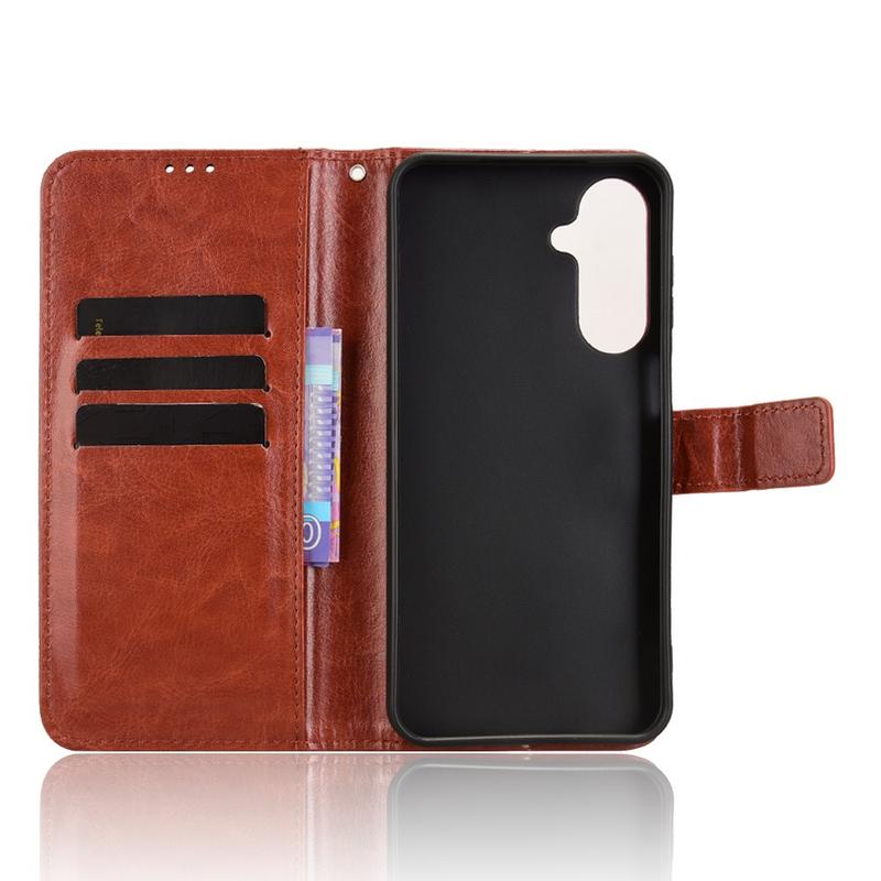 Gi din nye Samsung Galaxy M36 et raffinert vintageutseende samtidig som den erstatter hverdagslommeboken din. Eksteriøret i polyuretan med Crazy Horse-tekstur kombineres med et støtdempende TPU-skall for å beskytte mot fall og riper, mens smarte lommer holder orden på kort og kontanter.