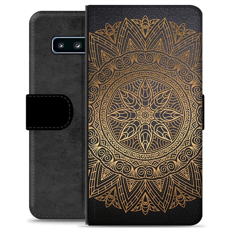 Samsung Galaxy S10 Premium Wallet Case - Mandala er det perfekte kjøpet for deg som ønsker å beskytte telefonen med stil. Det vakre mandala-designet gjør telefonen din til et moteuttrykk, mens de praktiske funksjonene som kortholder og stativfunksjon gjør hverdagen din mer bekvem. Den høye kvaliteten på materialene sikrer at dette dekselet vil beskytte telefonen din i lang tid, noe som gjør det til en god investering.