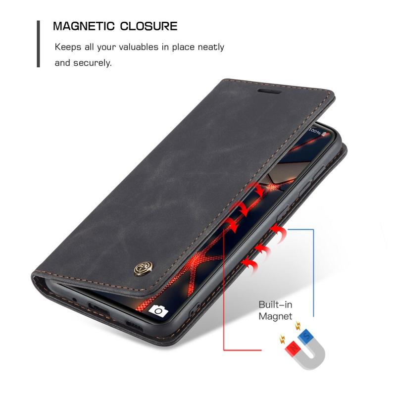 - Innebygde magneter holder Caseme 013-serien lommebok-deksel lukket