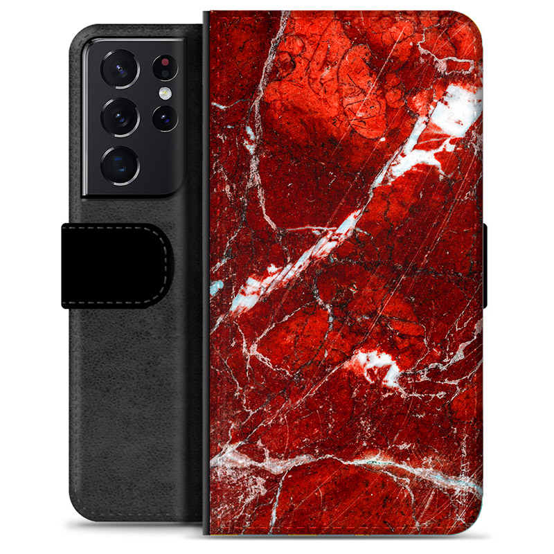 Samsung Galaxy S21 Ultra 5G Premium Lommebok-deksel - Rød Marmor