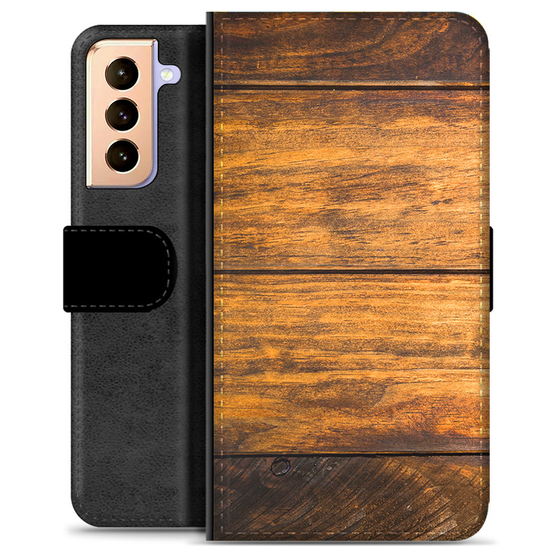 Samsung Galaxy S21+ 5G premium lommebok-deksel er designet for å gi din smarttelefon et elegant og distinkt utseende samtidig som det tilbyr funksjonalitet og beskyttelse. Dekselet har en realistisk trestrukturfinish på det ytre dekselet som kombinerer klassisk stil med et moderne preg, perfekt for de som ønsker å fremheve sin enhet med en unik estetikk.