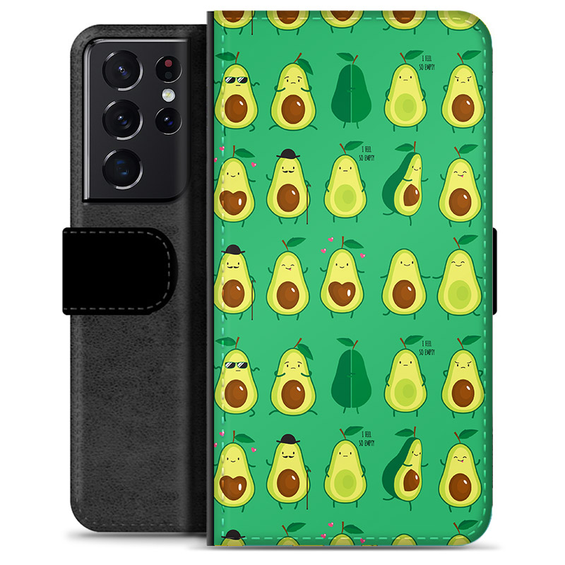 Opplev en kombinasjon av stil og funksjonalitet med dette Samsung Galaxy S21 Ultra 5G premium lommebok-dekselet. Dekselet er prydet med et livlig og unikt avokadomønster som gir enheten din en personlig touch, samtidig som det beskytter din verdifulle smarttelefon mot daglig slitasje. Denne lommebok-typen dekselet kommer med praktiske kortspor for å holde dine viktigste kort nær hånden, noe som gjør det til en ideell erstatning for en tradisjonell lommebok.