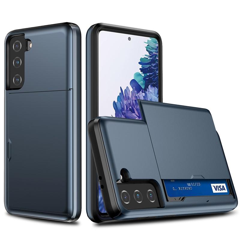 Samsung Galaxy S21 FE 5G Hybrid-deksel med Skyvekortspor - Mørkeblå