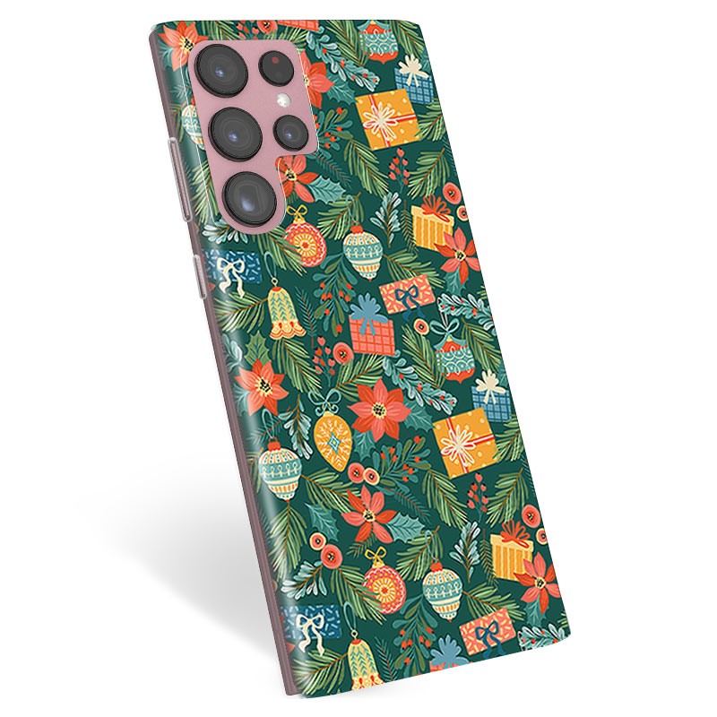 Samsung Galaxy S22 Ultra 5G TPU-dekselet er designet for å gi din mobiltelefon et unikt utseende samtidig som den beskytter mot riper, støt og andre hverdagsskader. Det fargerike mønsteret med juledekorelementer som julekuler, gavepakker og blomstermotiver gir en feststemning og gjør telefonen din til et blikkfang. Dekselet er laget av høykvalitets TPU (termoplastisk polyuretan), et materiale som er kjent for sin slitestyrke, elastisitet og evnen til å absorbere støt. Med presise utskjæringer for kamera, porter og knapper, sikrer dekselet full tilgang til telefonens funksjoner uten å måtte fjerne det. Lettvektig og enkel å feste, dette dekselet er et praktisk og stilig valg for å beskytte din Samsung Galaxy S22 Ultra 5G.