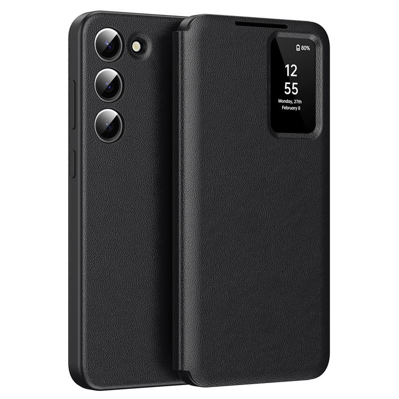 Oppgrader din Samsung Galaxy S22+ 5G med dette flipdekselet i lær av høy kvalitet, som kombinerer luksus, beskyttelse og praktiske egenskaper i ett enkelt, elegant tilbehør.