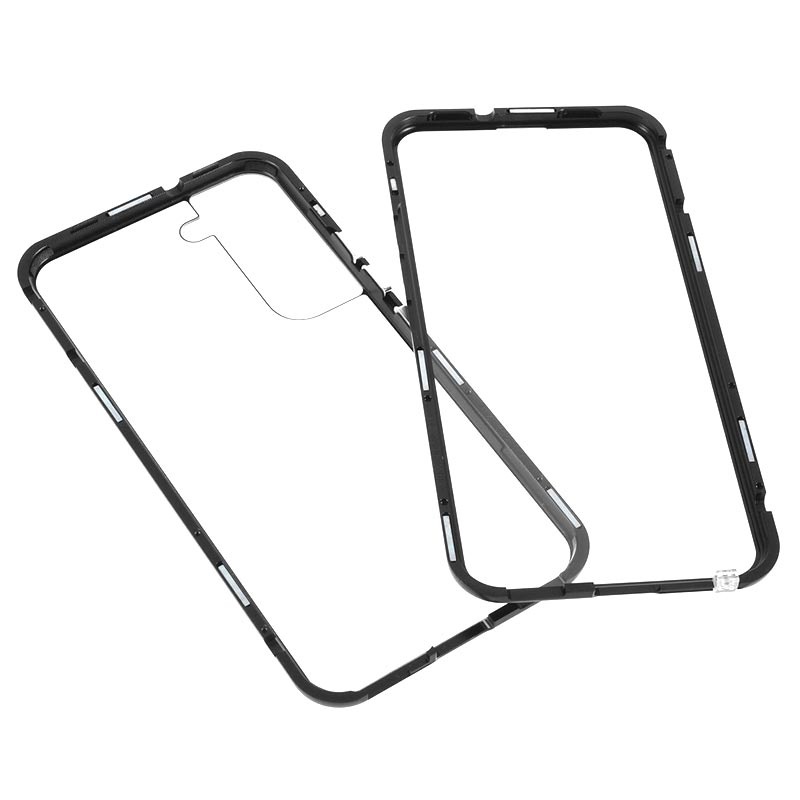Dette unike dekselet har en magnetisk metallramme og et klart herdet glass, både bak og foran for å beskytte perfekt Samsung Galaxy S22+ 5G. Det tilbyr førsteklasses beskyttelse for telefonen din og dette dekselet med herdet glass skjuler ikke skjønnheten til Samsung Galaxy S22+ 5G.