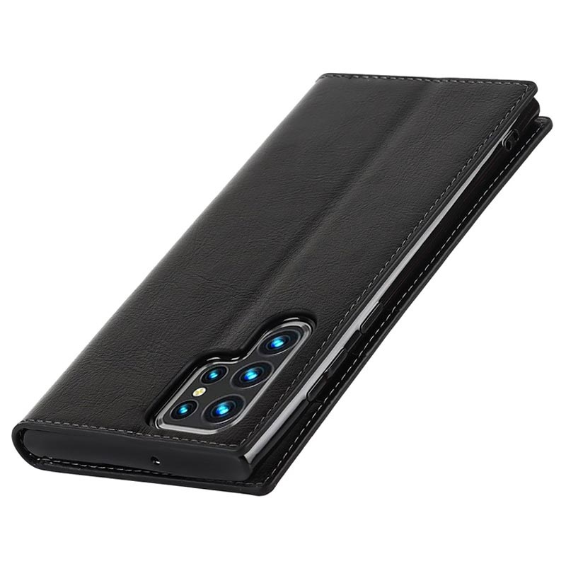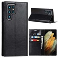 Samsung Galaxy S22 Ultra 5G Lommebok-deksel i Lær med Stativ - Svart