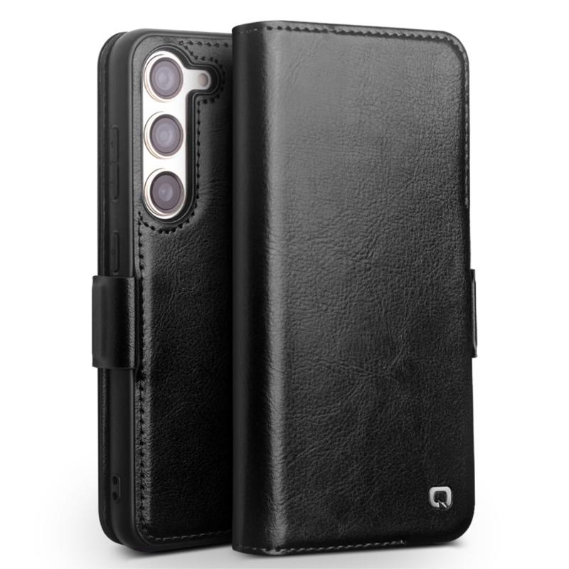 Samsung Galaxy S23 5G Qialino Classic Lommebok-deksel I Lær (Åpen Emballasje - Bulk Tilfredsstillende) - Svart