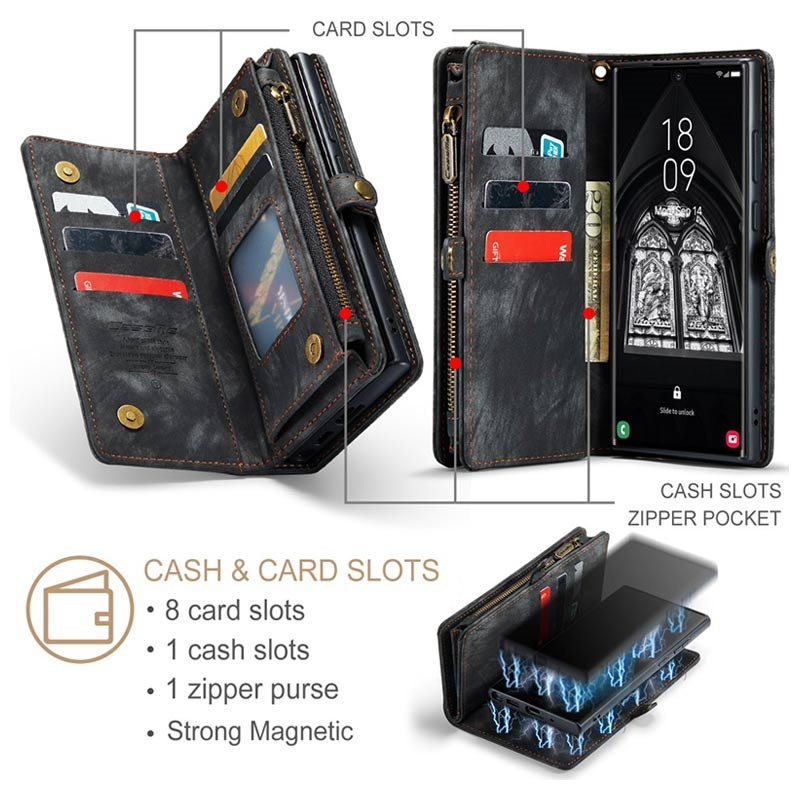 Caseme 008 2-i-1 Multifunksjonell Lommebok-deksel til Samsung Galaxy S23 Ultra 5G