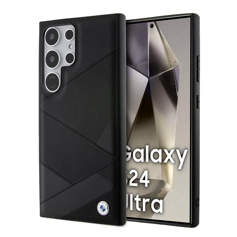BMW Signature Crossing Lines-mønster i skinnbelagt etui til Samsung Galaxy S24 Ultra