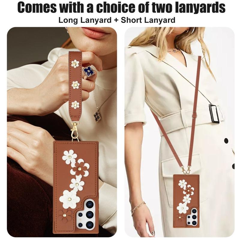 Blomsterdekoretui med stropp og kortspor til Samsung Galaxy S24 Ultra