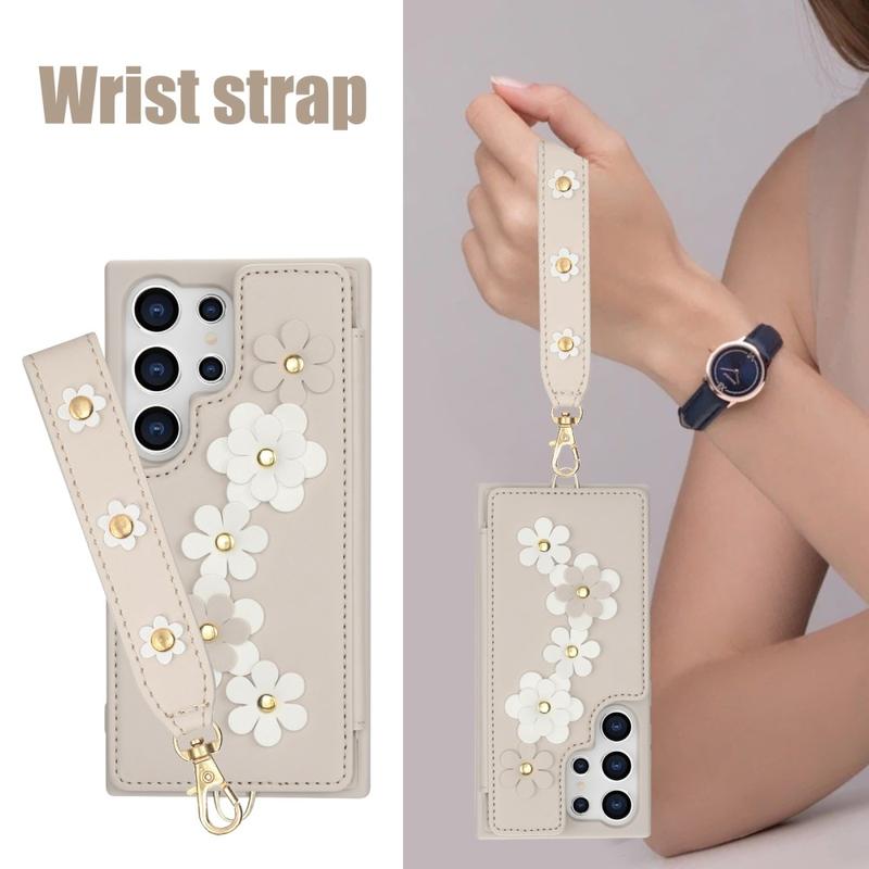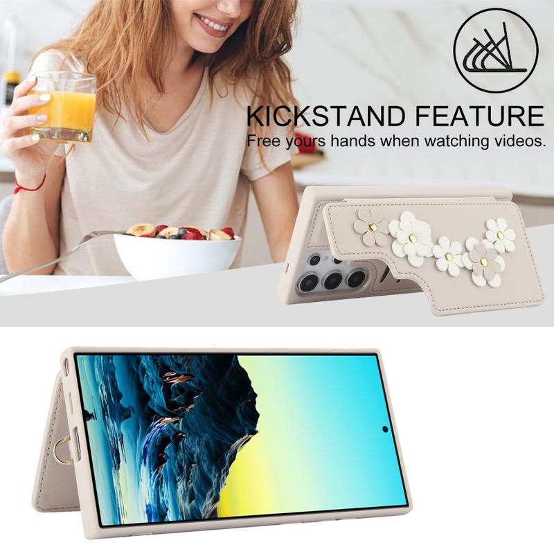 Blomsterdekoretui med stropp og kortspor til Samsung Galaxy S24 Ultra