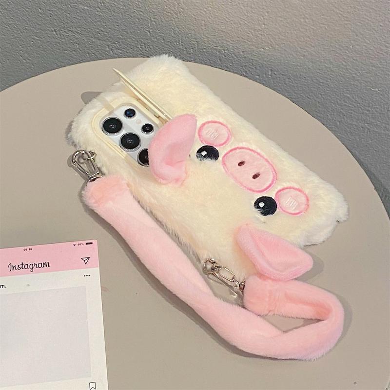 Plysj smågrise-deksel med støtte og håndstropp til Samsung Galaxy S24 Ultra