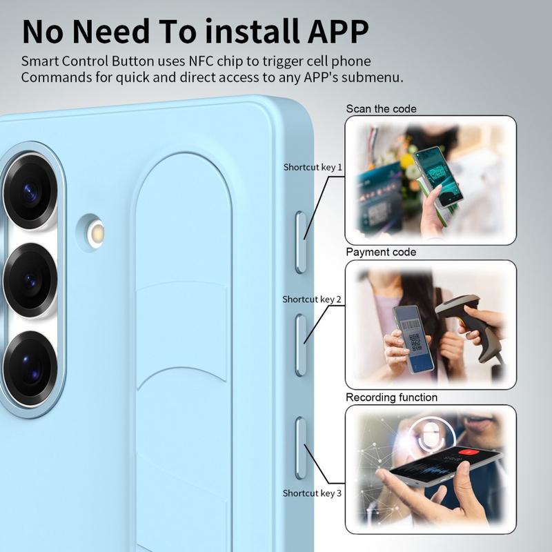 Smart hybrid-deksel med stående grep for Samsung Galaxy S24+ - NFC-tilpassbare hurtigtaster, kickstand på håndleddet og kamerabeskyttelse i aluminiumslegering