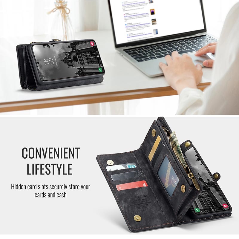 Gjør dagen din effektiv med Caseme 008 2-i-1 Samsung Galaxy S24 FE lommebok-deksel.