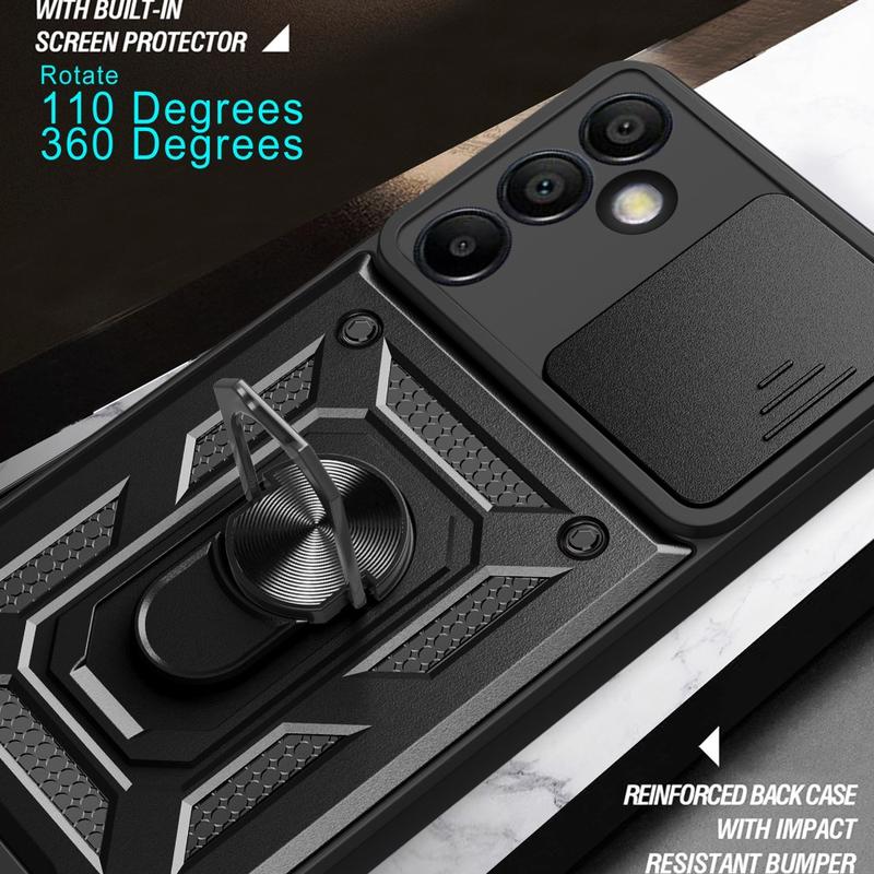- Roterende ring hybridetui med kameraavskjerming for Samsung Galaxy S24 FE