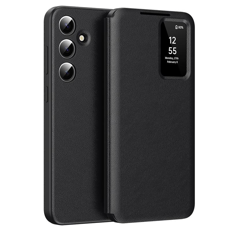 Oppgrader din Samsung Galaxy S24 FE med dette flipdekselet i lær av høy kvalitet, som kombinerer luksus, beskyttelse og praktiske egenskaper i ett enkelt, elegant tilbehør.