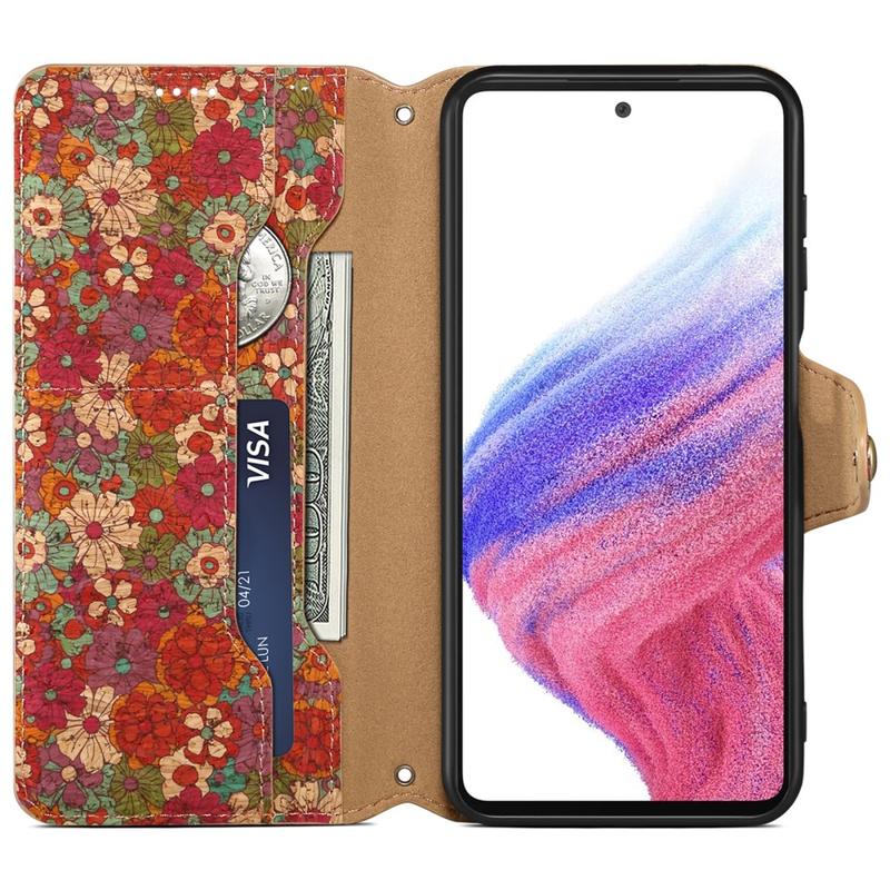 Four Seasons Wallet Case er et stilig og funksjonelt tilbehør til din Samsung Galaxy S24. Etuiet er laget av PU av høy kvalitet og har en innside av TPU som gir effektiv beskyttelse av telefonen. Etuiet er trykt med vakre blomstermønstre, noe som gjør det unikt og iøynefallende. Det er også designet med kortspor og kontantlomme, slik at du enkelt kan ta med deg de viktigste eiendelene dine. Magnetlåsen gjør det enkelt å bruke og holder verdisakene dine trygge på innsiden. I tillegg kan det klaffbare mobildekselet gjøres om til et visnings- og skrivestativ for å tilfredsstille dine behov. Etuiet er heldekkende og beskytter telefonen mot smuss, riper, fall og støt, mens det reserverte hullet til mottakeren gjør at du kan snakke med lukket etui.