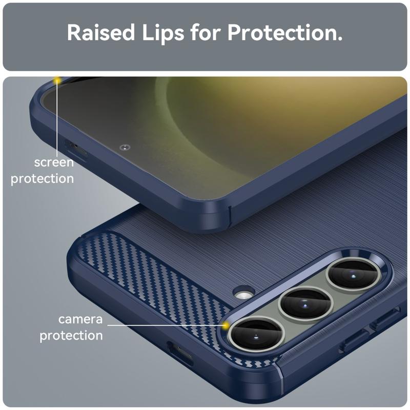Samsung Galaxy S24+ Børstet TPU Deksel - Karbonfiber - Blå