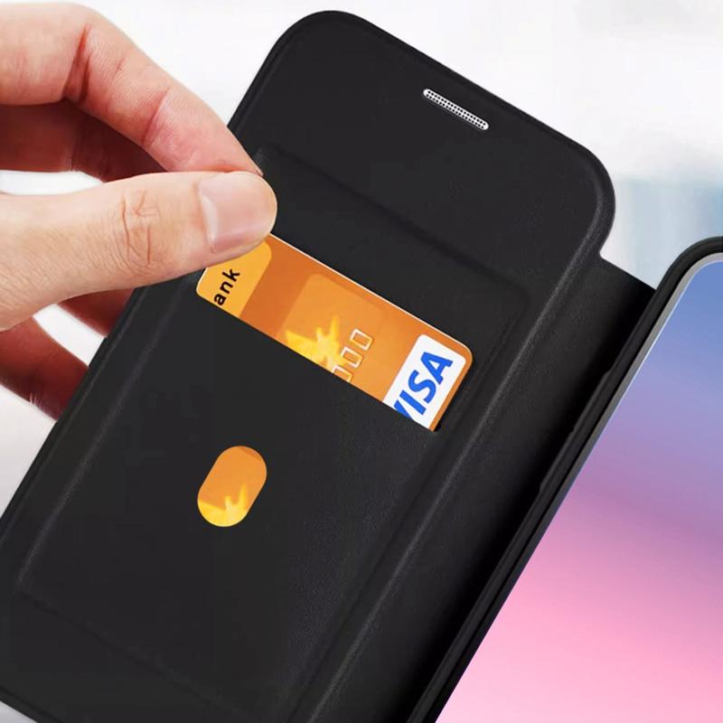 Dette førsteklasses Samsung Galaxy S24+-etuiet er laget av TPU, akryl og polyuretan av høy kvalitet i en fin prosess for å sikre en delikat og utsøkt finish. Det er utstyrt med et praktisk kortspor som gjør det enkelt å dra kort og bruke dem når du er på farten, og har en sterk magnet for automatisk lukking, noe som gjør det trygt og praktisk å oppbevare ting på innsiden. Dette Samsung Galaxy S24+-etuiet gir effektiv beskyttelse mot daglig slitasje, riper, merker og skrammer, mens den avanserte RFID-blokkeringsteknologien i kortsporet sikrer at dine personlige opplysninger er beskyttet mot tyveri. I tillegg er den innebygde magnetringen kompatibel med MagSafe trådløs lading, slik at du kan lade Samsung Galaxy S24+ uten å ta av deg etuiet.