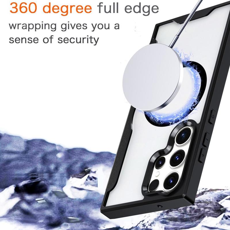 Dette førsteklasses Samsung Galaxy S24 Ultra-etuiet er laget av TPU, akryl og polyuretan av høy kvalitet i en fin prosess for å sikre en delikat og utsøkt finish. Det er utstyrt med et praktisk kortspor som gjør det enkelt å dra kort og bruke dem når du er på farten, og har en sterk magnet for automatisk lukking, noe som gjør det trygt og praktisk å oppbevare ting på innsiden. Dette Samsung Galaxy S24 Ultra-etuiet gir effektiv beskyttelse mot daglig slitasje, riper, merker og skrammer, mens den avanserte RFID-blokkeringsteknologien i kortsporet sikrer at dine personlige opplysninger er beskyttet mot tyveri. I tillegg er den innebygde magnetringen kompatibel med MagSafe trådløs lading, slik at du kan lade Samsung Galaxy S24 Ultra uten å ta av deg etuiet.