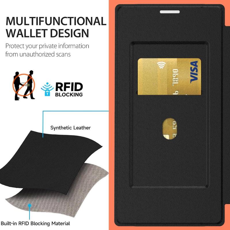 - Funksjoner: Kortspor, sterk magnet for automatisk lukking, RFID-blokkeringsteknologi, innebygd magnetring
