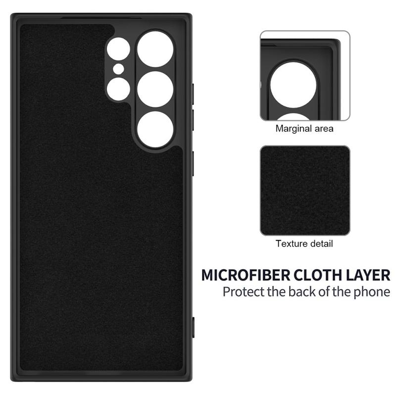 - Et fôr av mikrofiber på innsiden verner baksiden på din Samsung Galaxy S24 Ultra mot riper