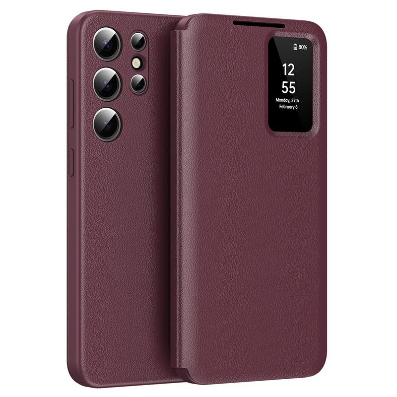 Oppgrader din Samsung Galaxy S24 Ultra med dette flipdekselet i lær av høy kvalitet, som kombinerer luksus, beskyttelse og praktiske egenskaper i ett enkelt, elegant tilbehør.