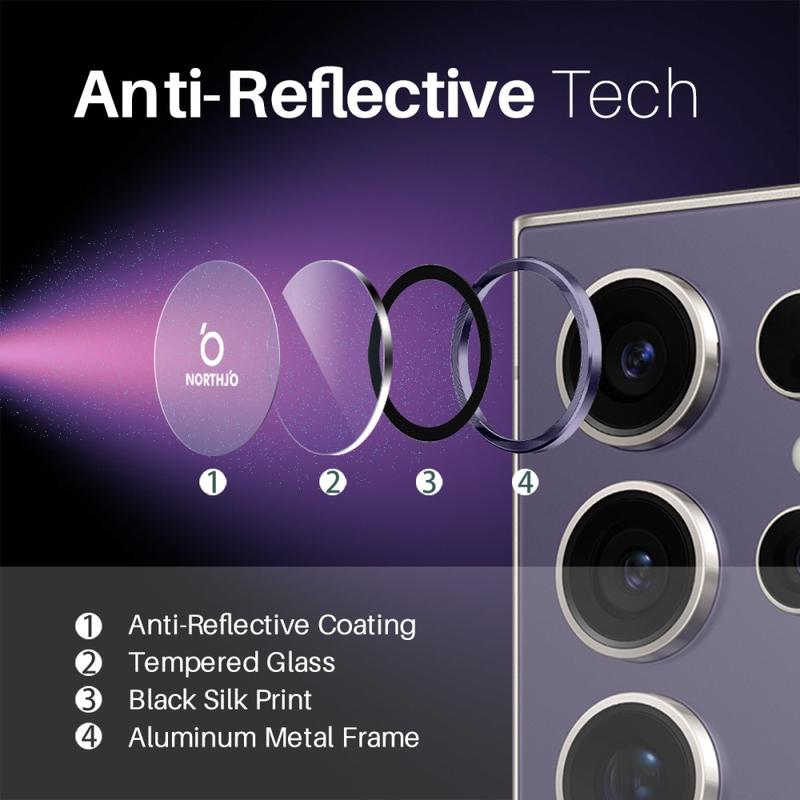 Oppgrader din Samsung Galaxy S25 Ultra med Northjo kameralinsebeskytter. Med en aluminiumsring med CD-vener gir den en elegant, moderne touch til din Samsung Galaxy S25 Ultra, samtidig som den gir robust beskyttelse. Det 9H herdede glasset beskytter mot riper, støt og støv, og sørger for at kameralinsen forblir krystallklar. Med enkel, verktøyfri montering kan du forbedre holdbarheten og estetikken til din Samsung Galaxy S25 Ultra på få sekunder.