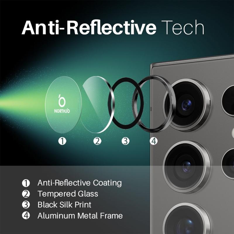 Oppgrader din Samsung Galaxy S25 Ultra med Northjo kameralinsebeskytter. Med en aluminiumsring med CD-vener gir den en elegant, moderne touch til din Samsung Galaxy S25 Ultra, samtidig som den gir robust beskyttelse. Det 9H herdede glasset beskytter mot riper, støt og støv, og sørger for at kameralinsen forblir krystallklar. Med enkel, verktøyfri montering kan du forbedre holdbarheten og estetikken til din Samsung Galaxy S25 Ultra på få sekunder.