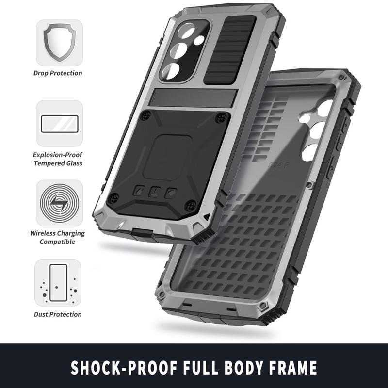 Samsung Galaxy S25+ R-Just Premium-deksel med kickstand og skjermbeskytter i herdet glass - Sølv