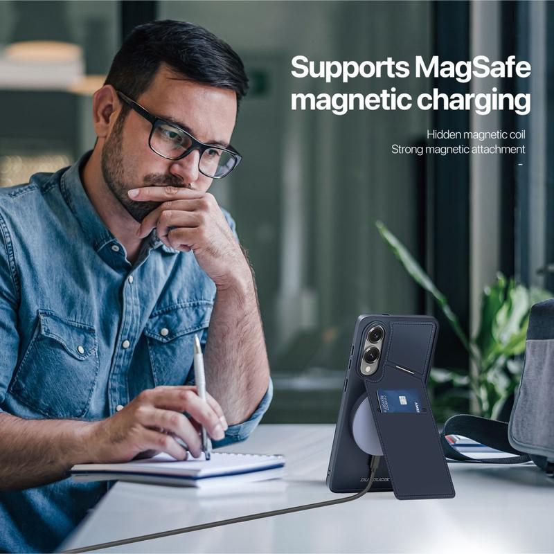 Hold din Samsung Galaxy S25 Edge trygg og stilig med Dux Ducis Rafi II Series Magnetic Case. Dette førsteklasses etuiet kombinerer en elegant skinnfinish med et slitesterkt TPU-interiør for omfattende beskyttelse. Det er designet for funksjonalitet, og har innebygd støtteben, magnetisk lukking og kortspor, noe som gjør det ideelt for brukere som trenger både bekvemmelighet og eleganse.