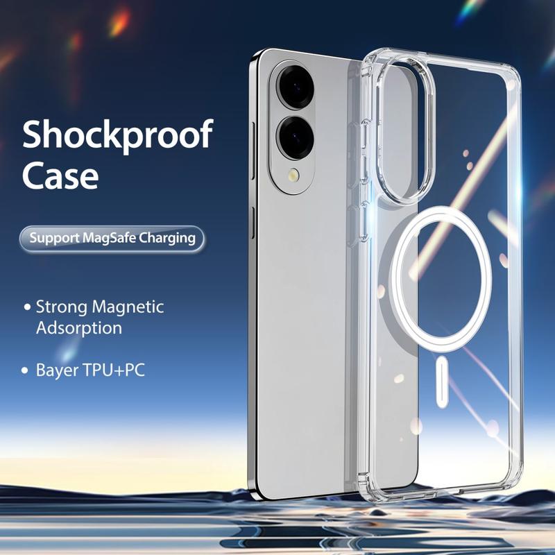 Beskytt din Samsung Galaxy S25 Edge med Dux Ducis Clin Series Clear Case. Dette gjennomsiktige telefondekselet er designet for sømløs MagSafe-kompatibilitet, og kombinerer robust beskyttelse med elegant, minimalistisk estetikk. Den krystallklare finishen fremhever den originale designen til din Samsung Galaxy S25 Edge, mens det slitesterke materialet beskytter mot riper og støt.