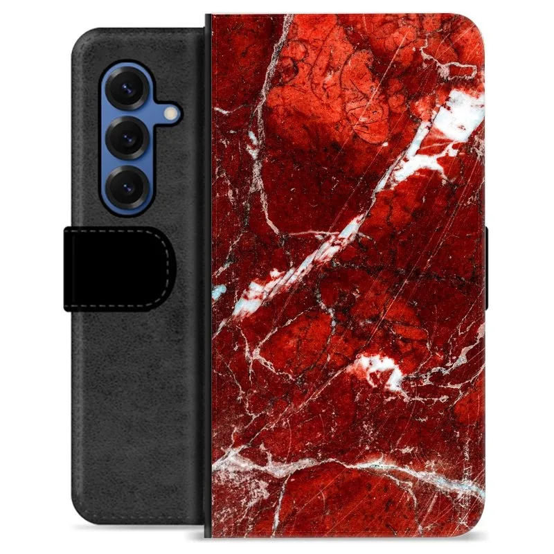 Samsung Galaxy S25 Premium Lommebok-deksel - Rød Marmor