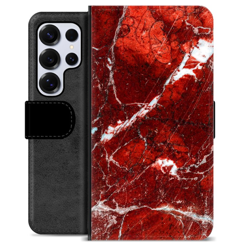Samsung Galaxy S25 Ultra Premium Lommebok-deksel - Rød Marmor