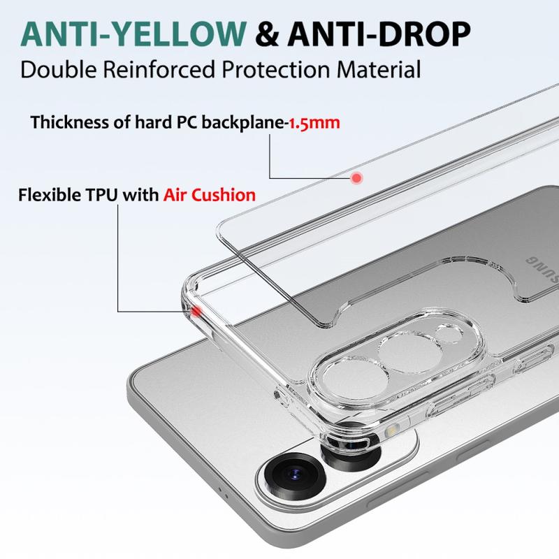 Dette tilbehøret bruker en kombinasjon av akryl og TPU for å holde smarttelefonen i best mulig stand. Samtidig ser forsterkede, støtabsorberende hjørner for å forhindre fallskader, mens den gjennomskinnelige designen viser den vakre utformingen av Samsung Galaxy S25 Edge.