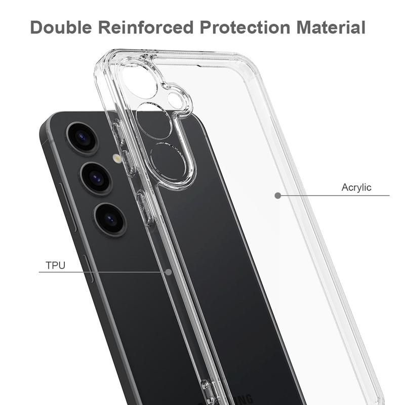 Dette tilbehøret bruker en kombinasjon av akryl og TPU for å holde smarttelefonen i best mulig stand. Samtidig ser forsterkede, støtabsorberende hjørner for å forhindre fallskader, mens den gjennomskinnelige designen viser den vakre utformingen av Samsung Galaxy S25 FE.