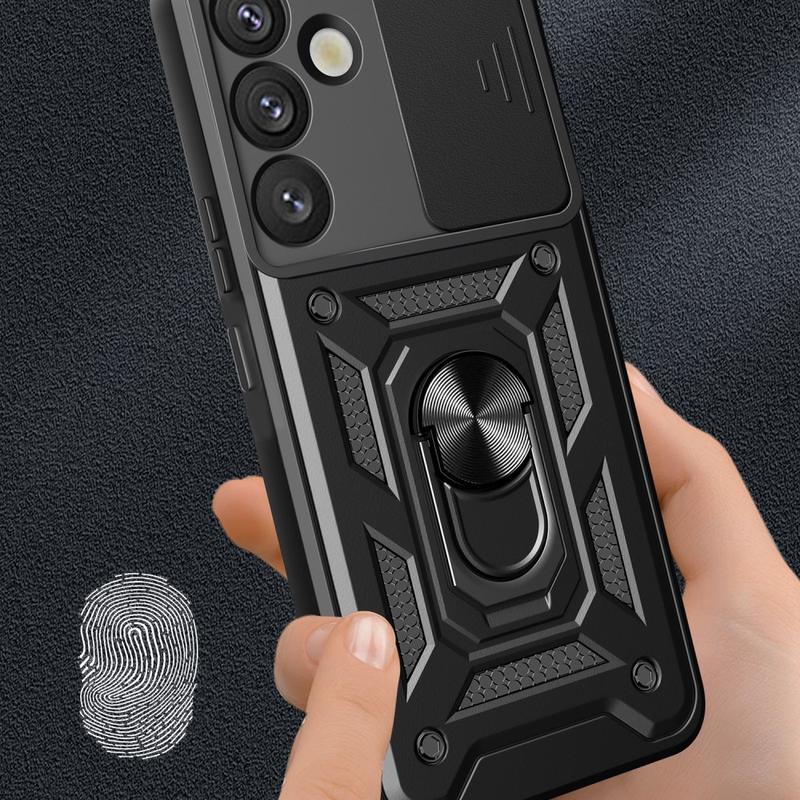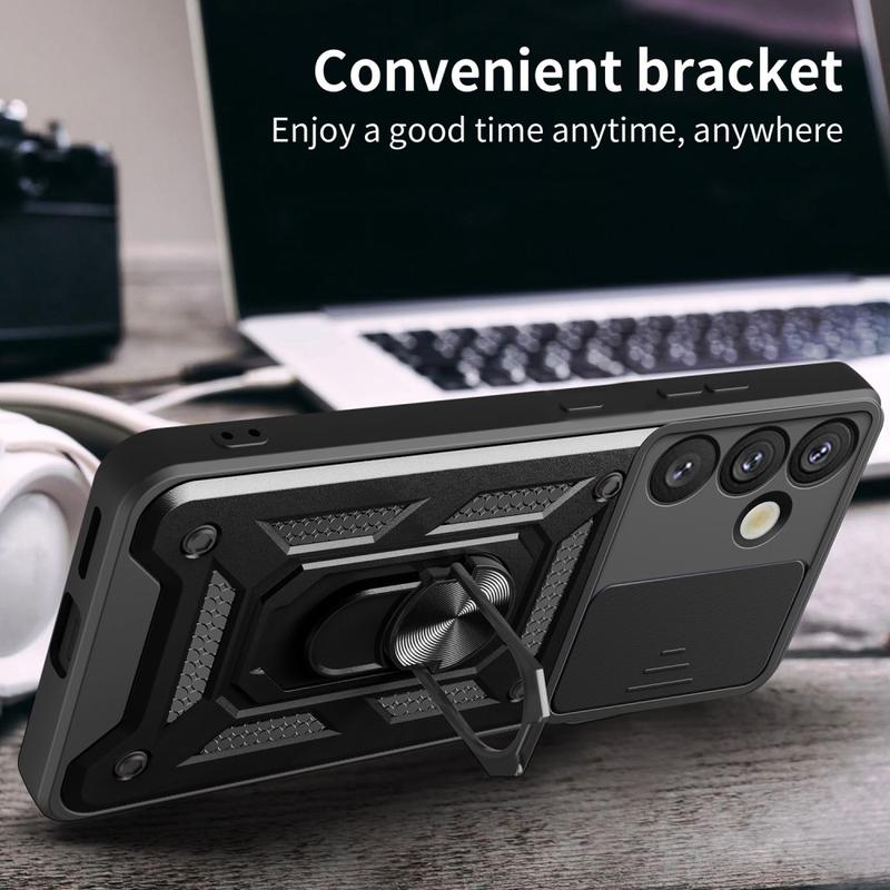 - Roterende ring hybridetui med kameraavskjerming for Samsung Galaxy S25