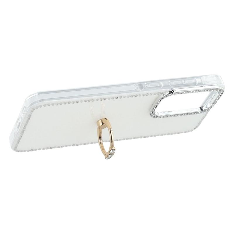 - Rhinestone-ramme rundt kameraøya gir subtil glans uten å hindre linsens ytelse.