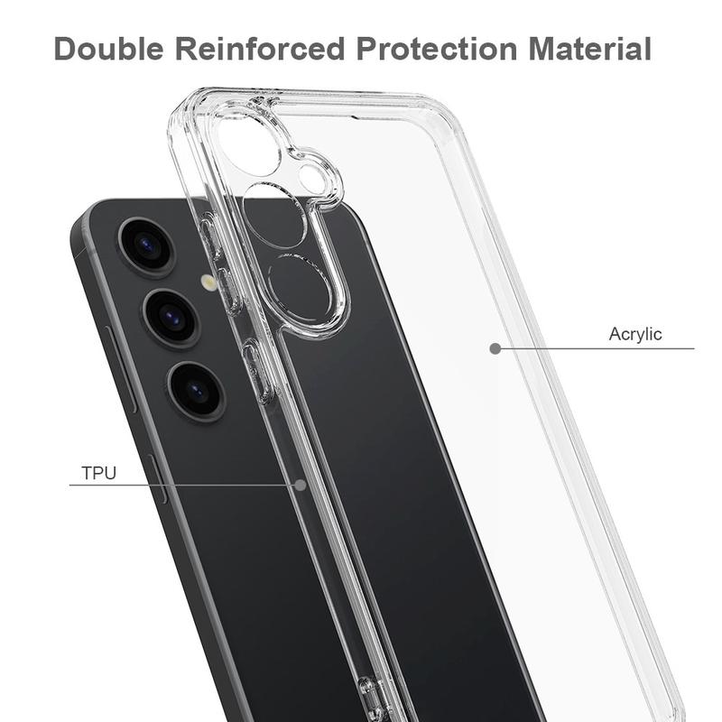 Dette tilbehøret bruker en kombinasjon av akryl og TPU for å holde smarttelefonen i best mulig stand. Samtidig ser forsterkede, støtabsorberende hjørner for å forhindre fallskader, mens den gjennomskinnelige designen viser den vakre utformingen av Samsung Galaxy S25+.